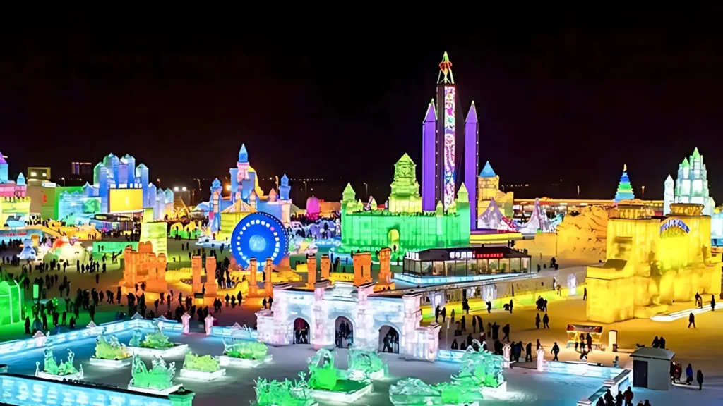 Key highlights include the Great Wall of China, the Forbidden City in Beijing, and the Ice and Snow World and Sun Island Snow Sculpture Art Expo in Harbin.