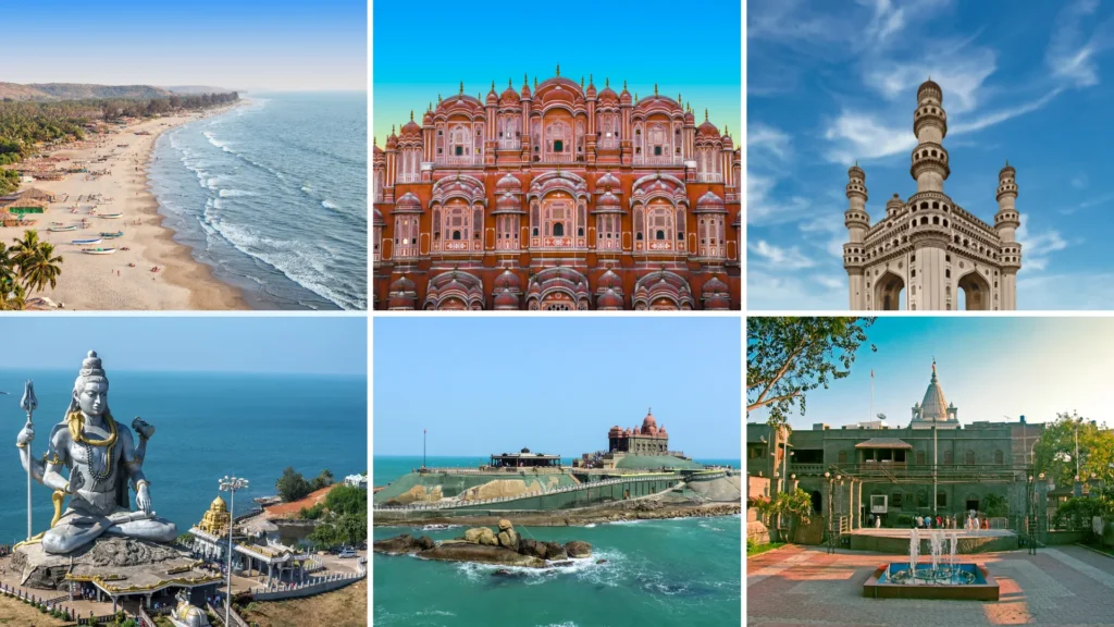 Travellers can explore the Taj Mahal, participate in the Ganga Aarti at Varanasi, discover Rajasthan palaces, enjoy Kerala backwaters, or walk through Old Delhi’s historic markets.