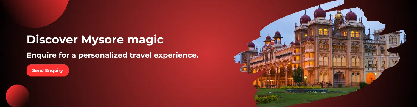 Take a peaceful stroll at Brindavan Gardens, visit KRS Dam, explore wildlife at Chamundi Hill forests, or take day trips to Nanjangud and Bandipur Tiger Reserve.
