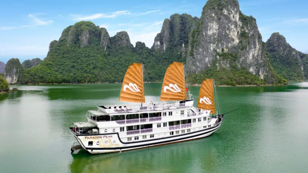 12h00 – 12h30: Embark Halong Cruise. Enjoy welcome drink and get a brief introductionabout cruise and safety guidelines. Check-in your cabin.